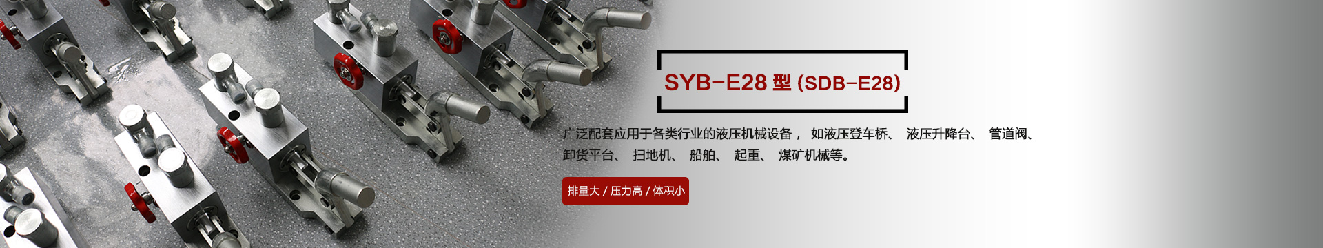 本產(chǎn)品SYB-E28型在本公司原有的SDB-E28型基礎上不斷改進改良,廣泛應用于各種行業(yè)的機械設備,如液壓登車橋、液壓升降臺、管道閥、卸貨平臺、掃地機、船舶、起重、煤礦機械等液壓機械設備上,效率高、結構緊湊,深受客戶的歡迎...